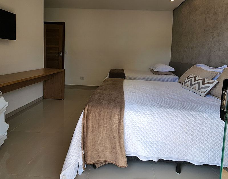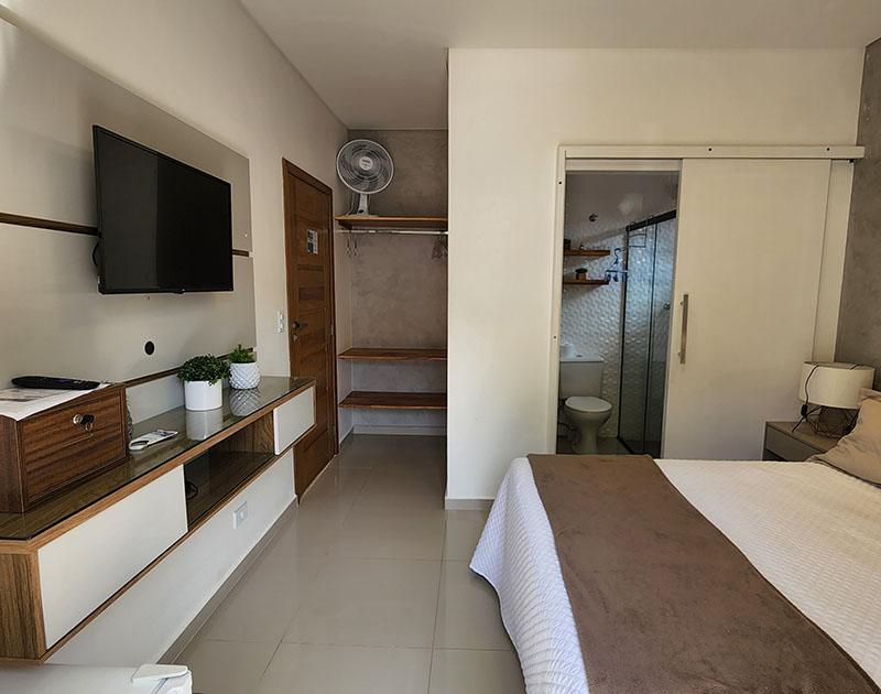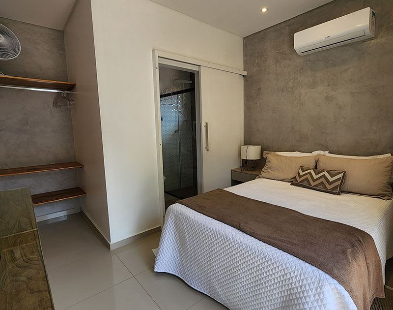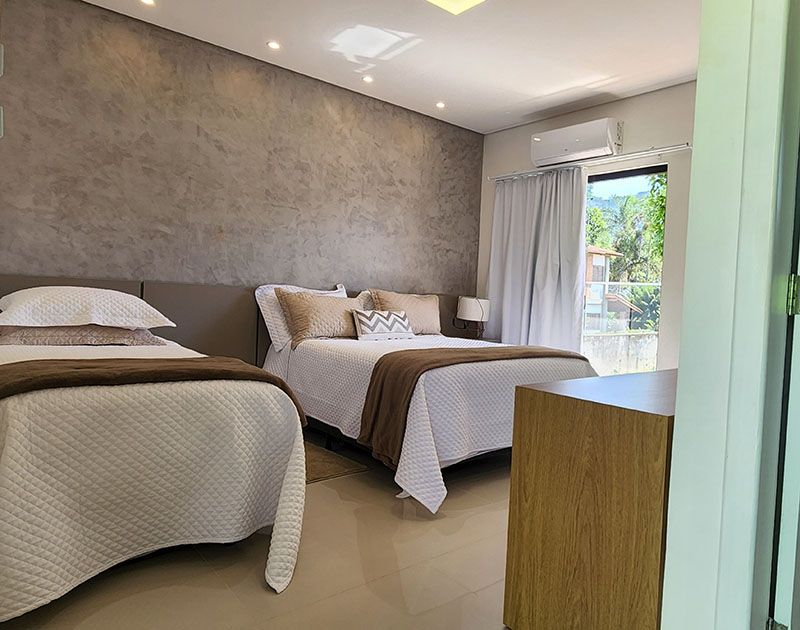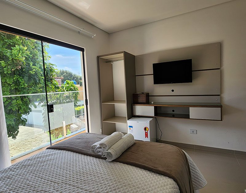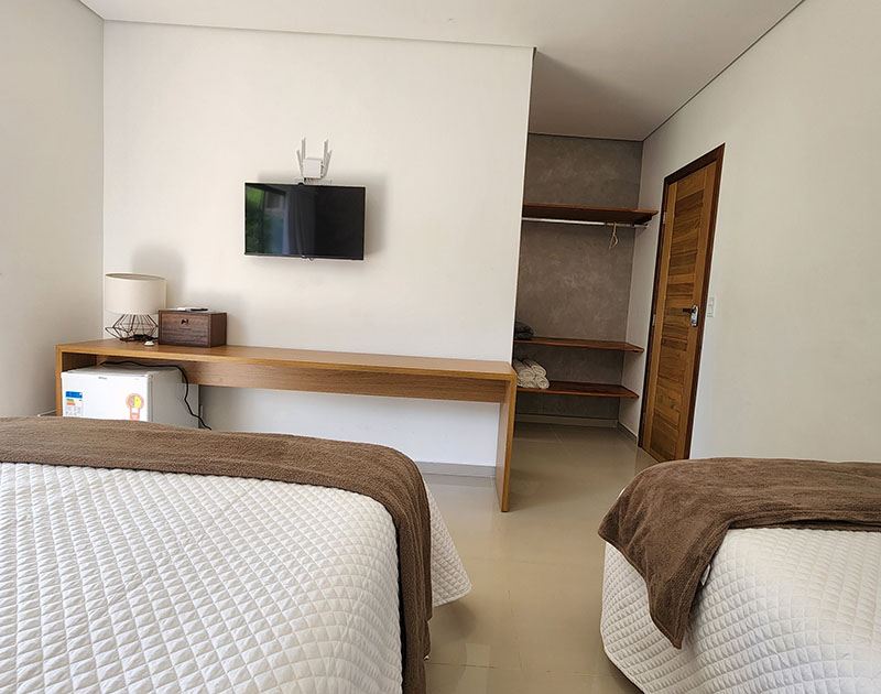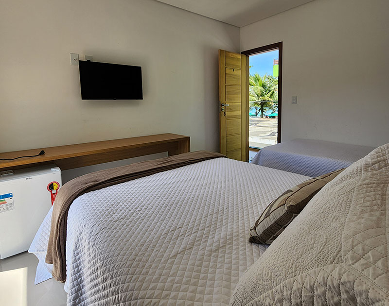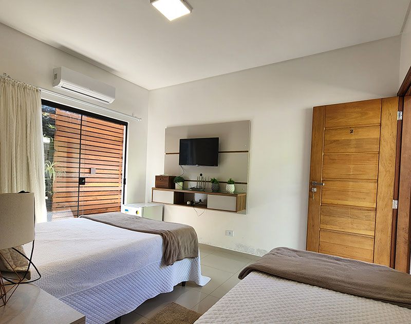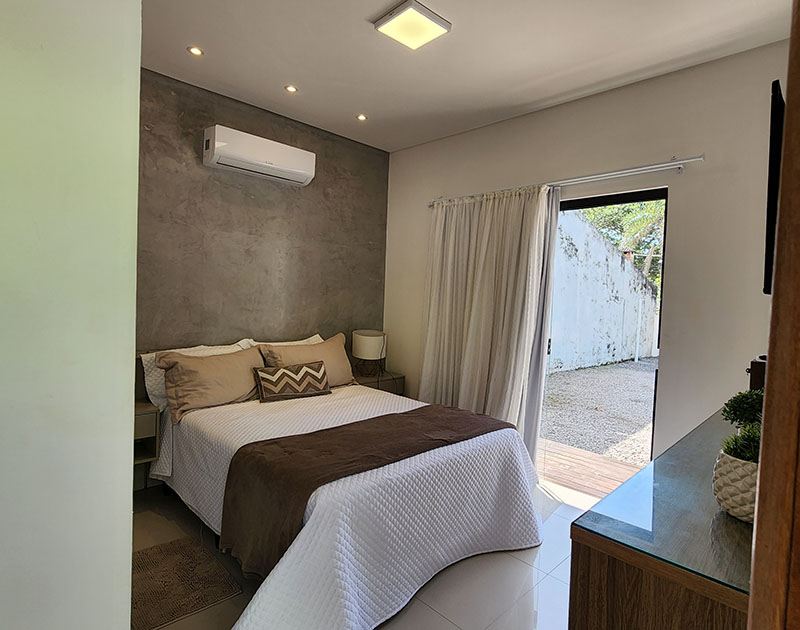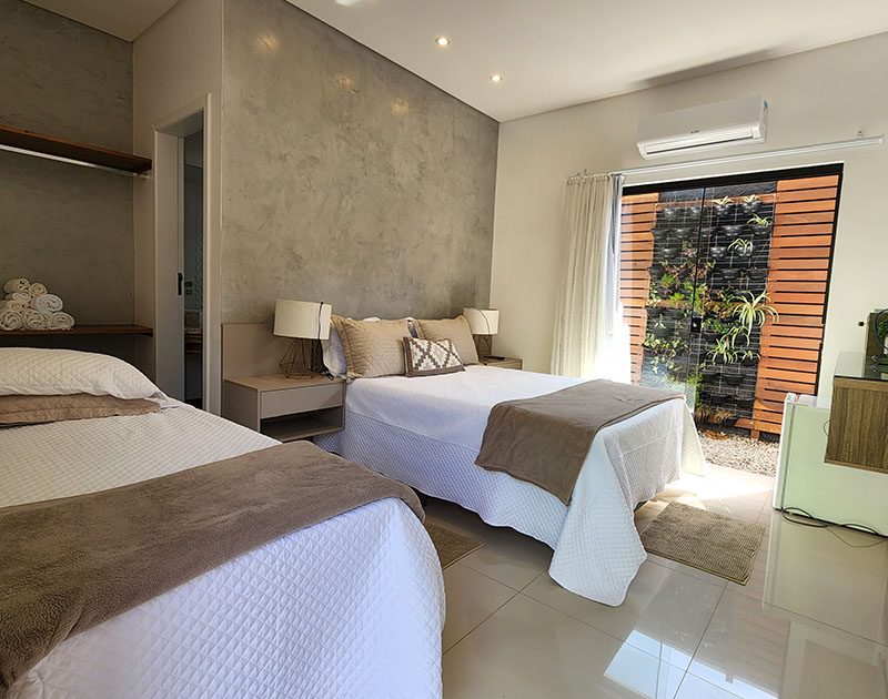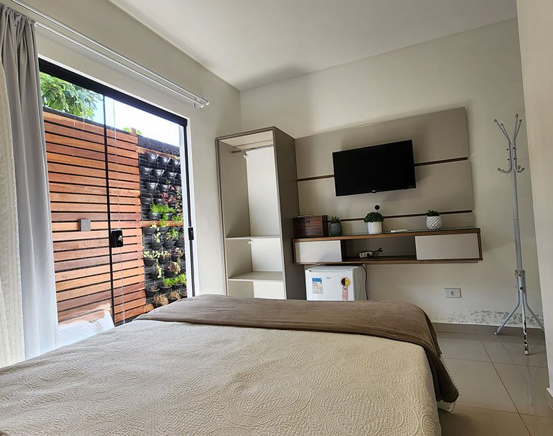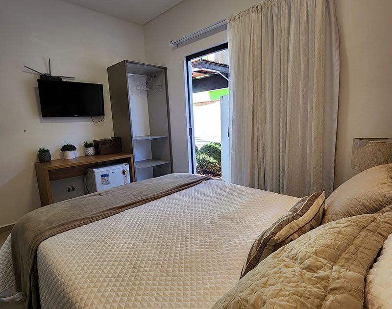 Este quarto duplo oferece um banheiro privativo com chuveiro e produtos de banho de cortesia. A acomodação também dispõe de ar-condicionado, TV de tela plana, frigobar, guarda-roupa e cofre, bem como uma vista do jardim. A unidade possui 1 cama.